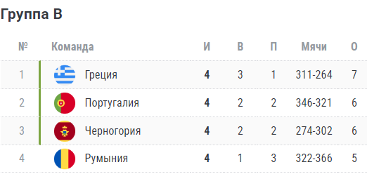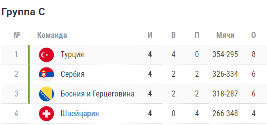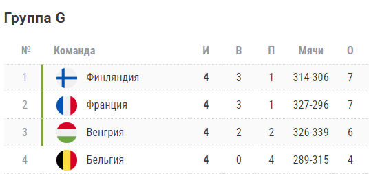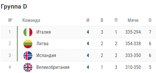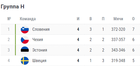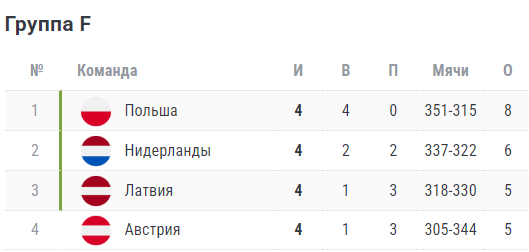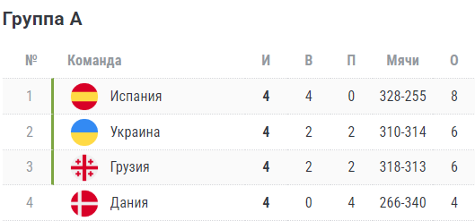 Турнирная таблица ЧМ-2027 (1-й этап евро-отбора).
