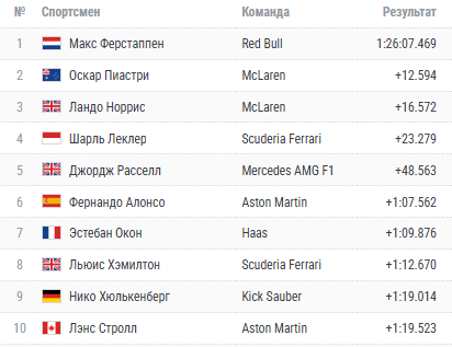 Всего на 2 очка Ландо опережает Макса Ферстаппена и на 13 напарника по стайни «Макларен» Оскара Пиастри.