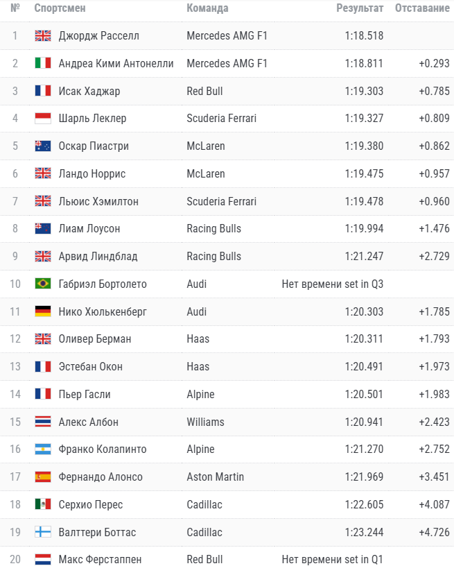 Формула-1. Квалификация Гран-при Австралии-2026, Прямая трансляция из Мельбурна, результаты гонки…