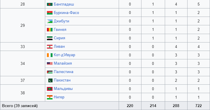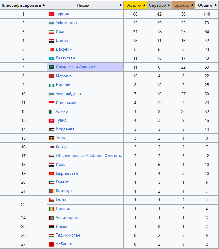 Медальный зачет Исламских игр 2025 в Эр-Рияде (Саудовская Аравия). Обновляется…