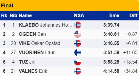 30-ть сильнейших лыжников и лыжниц по итогам квалификации пробьются в финальный блок. Финальные выступления начинаются с 1/4 финала. (5-ть групп по 6 лыжников).
