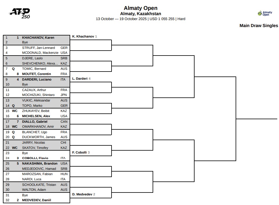 Турнирная сетка ATP 250 в Алматы