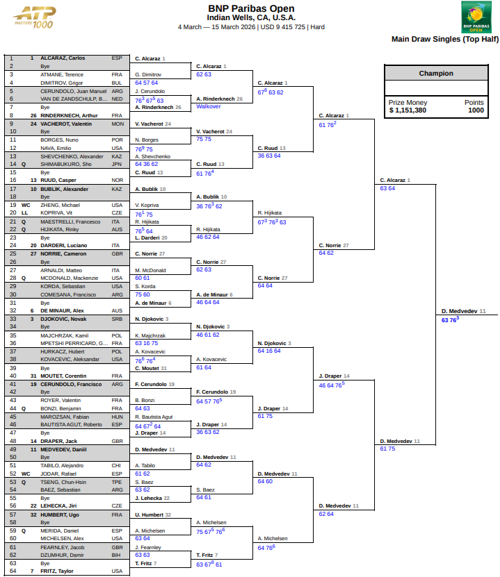 Сетка мастерса-1000 в Индиан-Уэллс у мужчин.