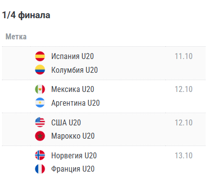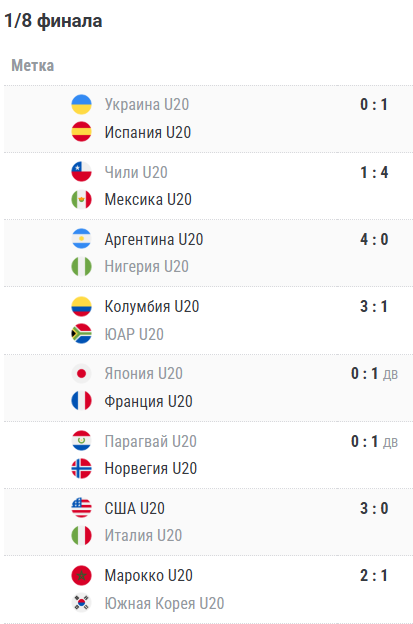 Результаты FIFA U-20 World Cup: 27 сентября | 28 сентября | 29 сентября | 30 сентября | 1 октября | 2 октября | 3 октября | 4 октября | 5 октября